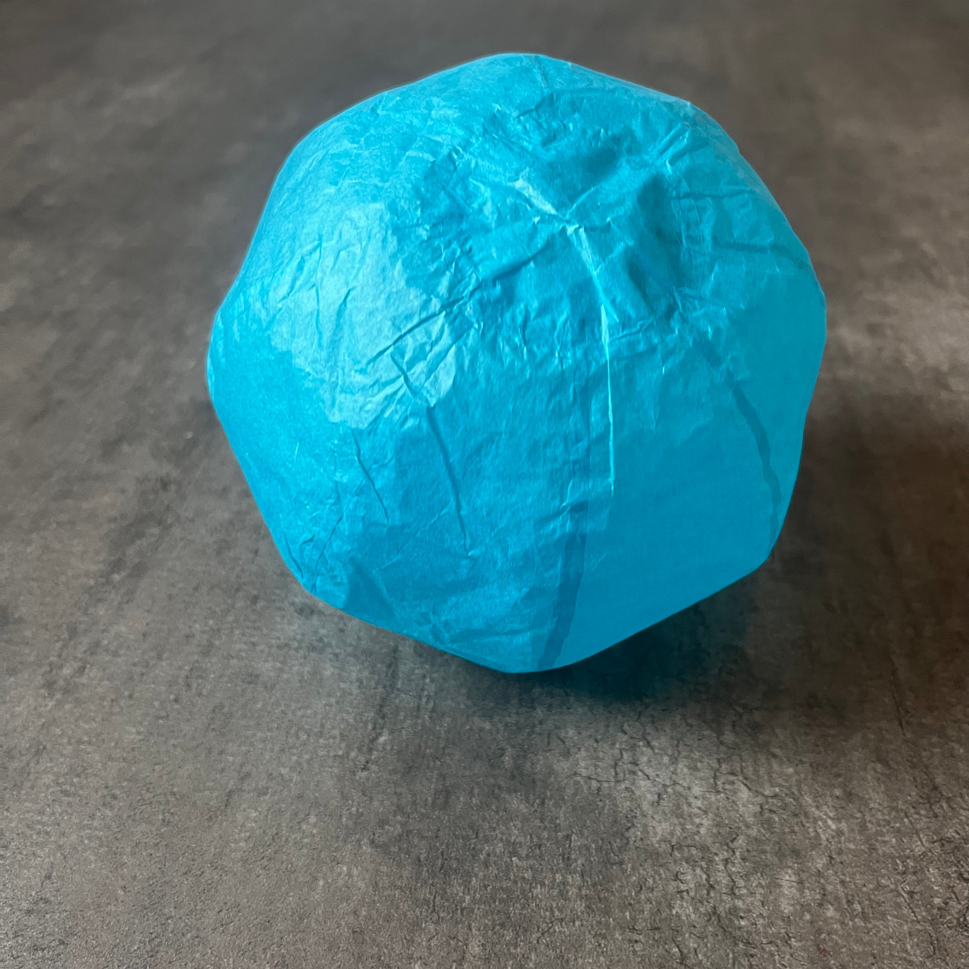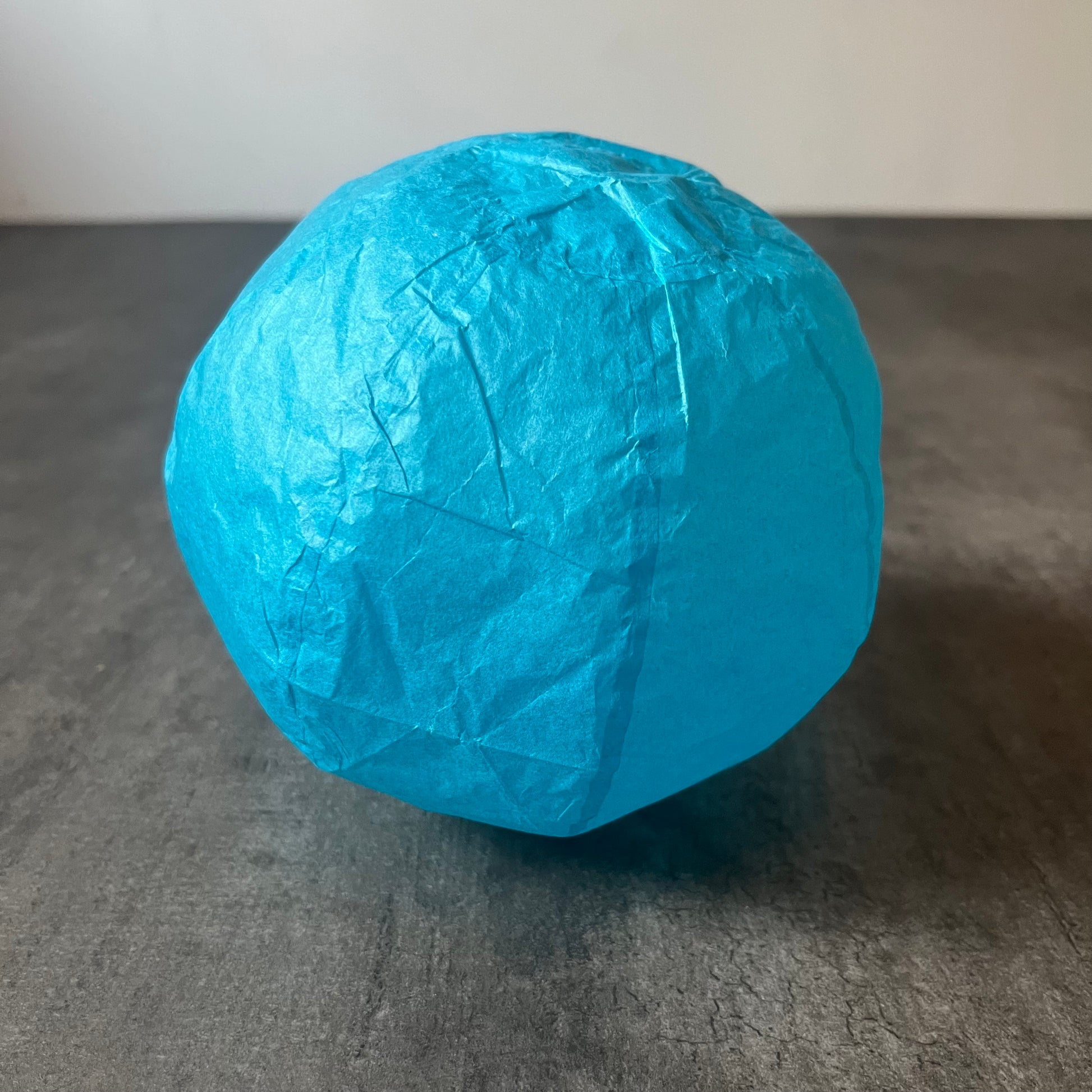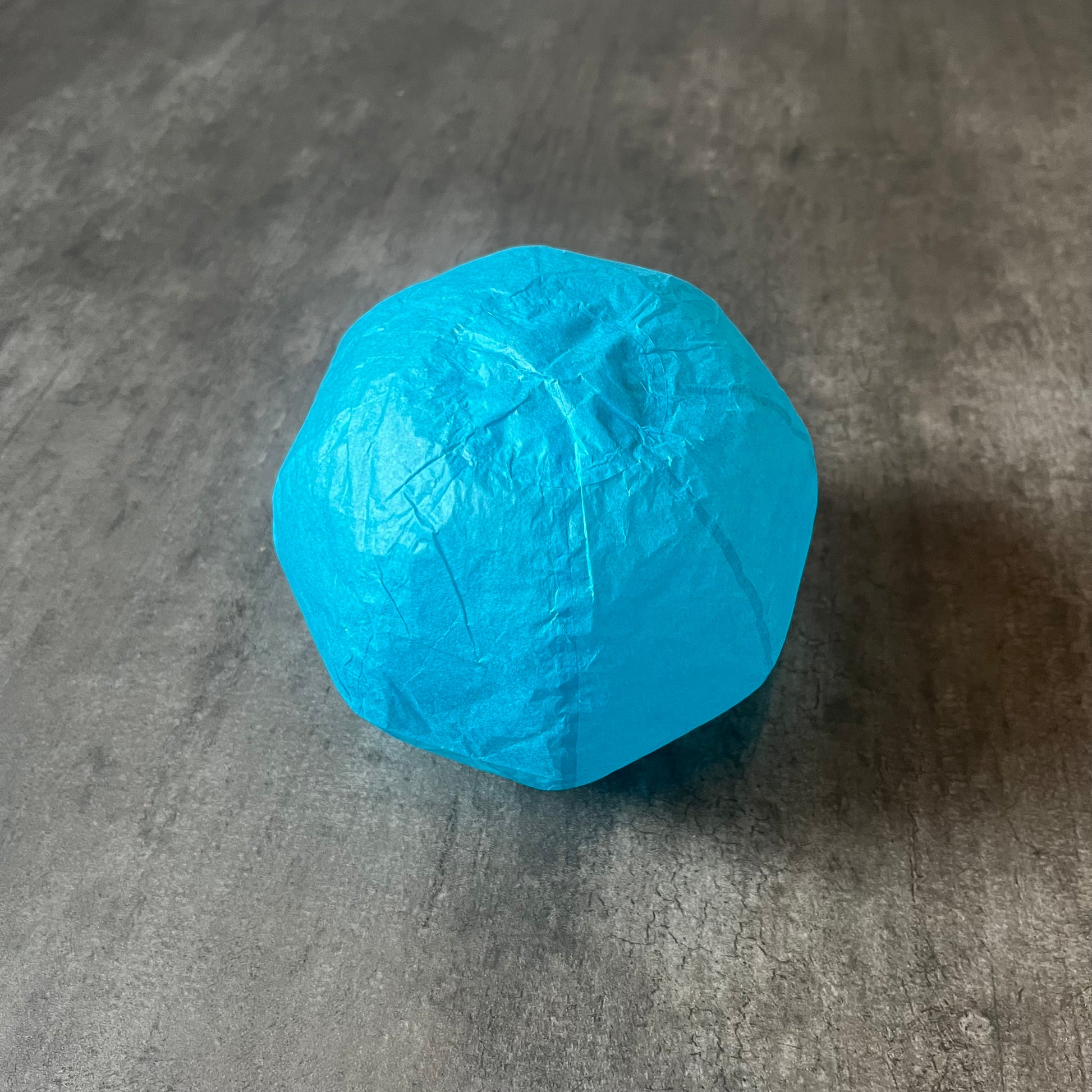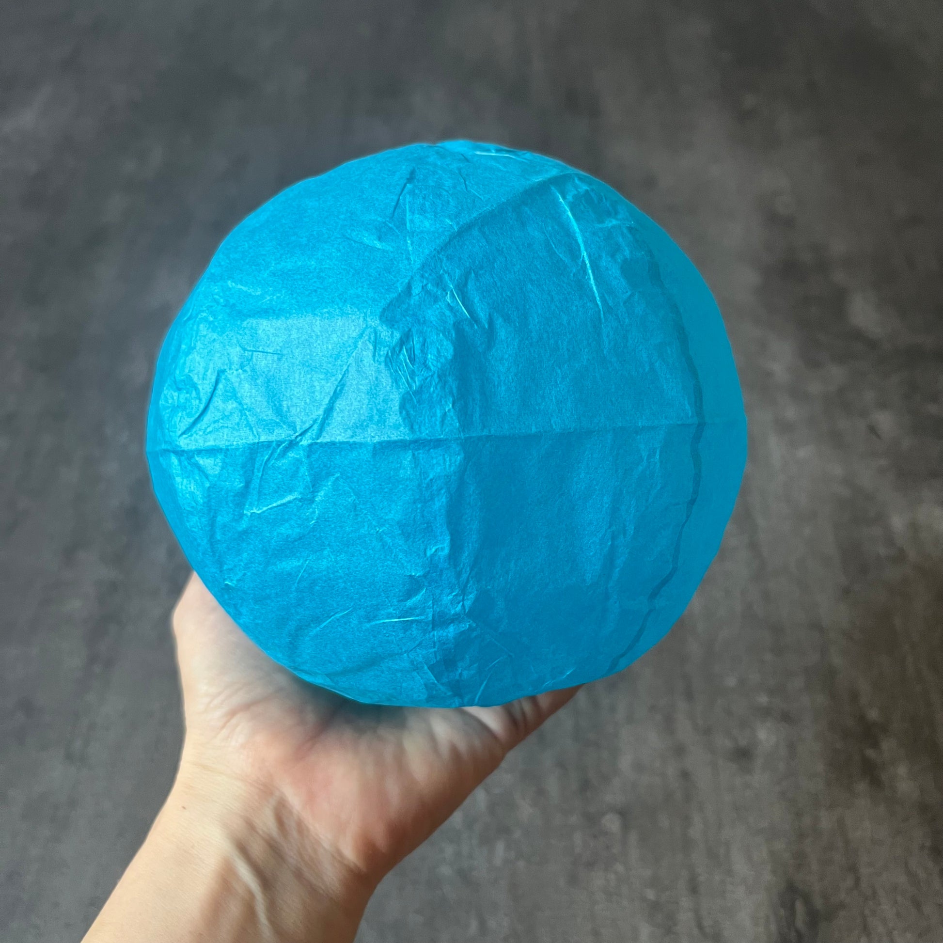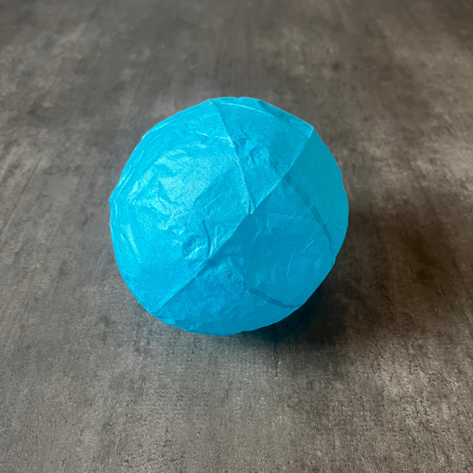 水色一色の紙風船。大変手間がかかる一色張り合わせ作業を行っています。
