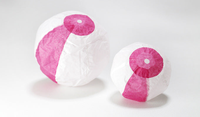 紙風船は日本の伝統的なペーパークラフト。日本の子供たちは昔からこの紙風船で遊び育ってゆきます。薄い紙でできているためとても軽く、室内外で突いて遊ぶ他、最近では、パーティー、イベントや、室内での飾り、また、プレゼントとして用いられています。