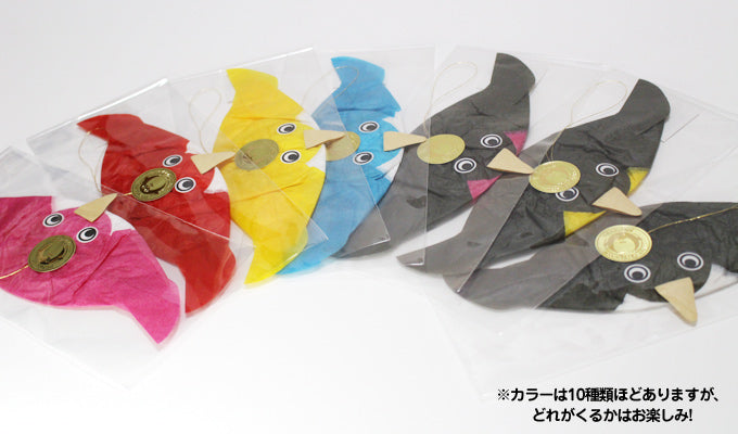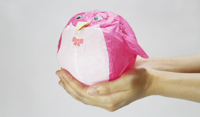 ファンシーで可愛いペンギンの紙風船。カラーは複数ありどれがくるかはお楽しみ。吊るし色がついています。